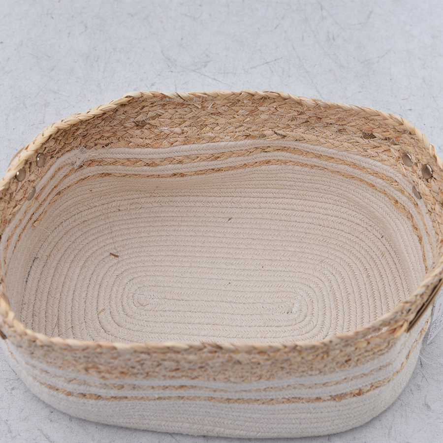 Natural oval rope and straw storage basket
