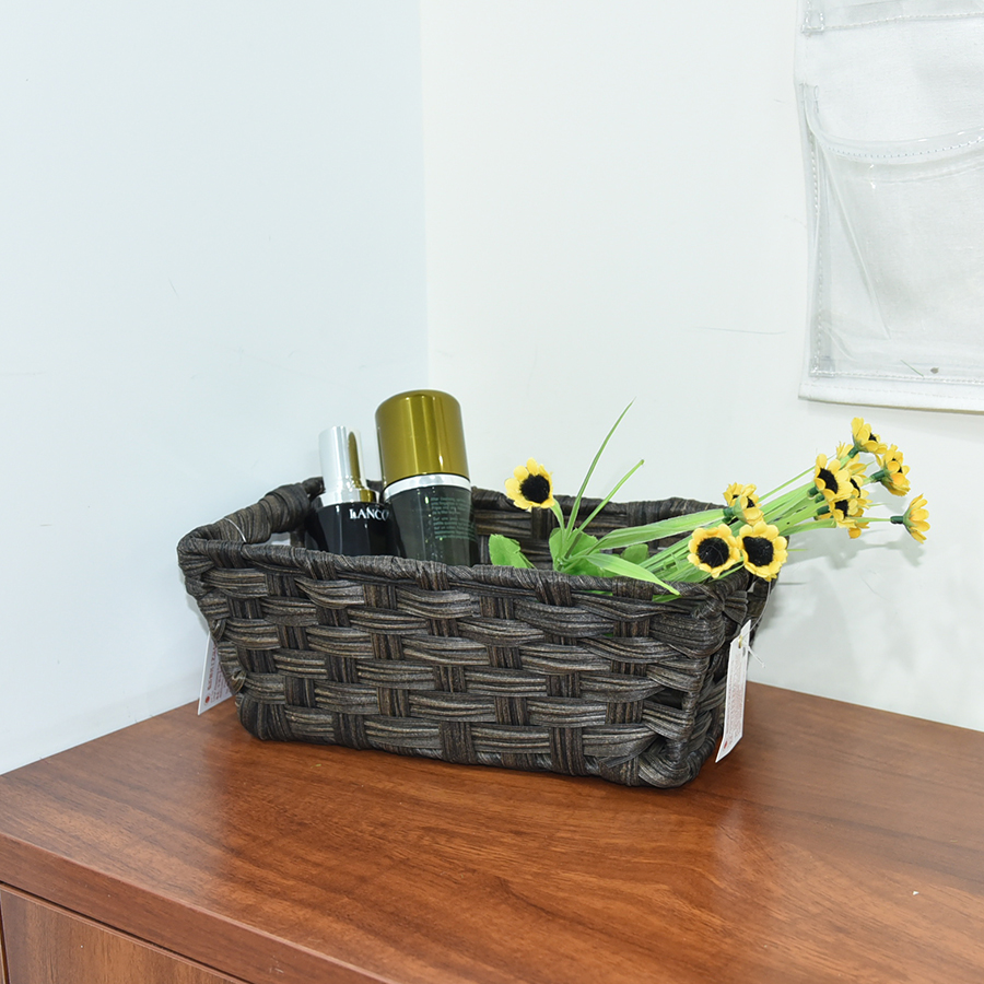 Dark brown woven storage tote basket with handles